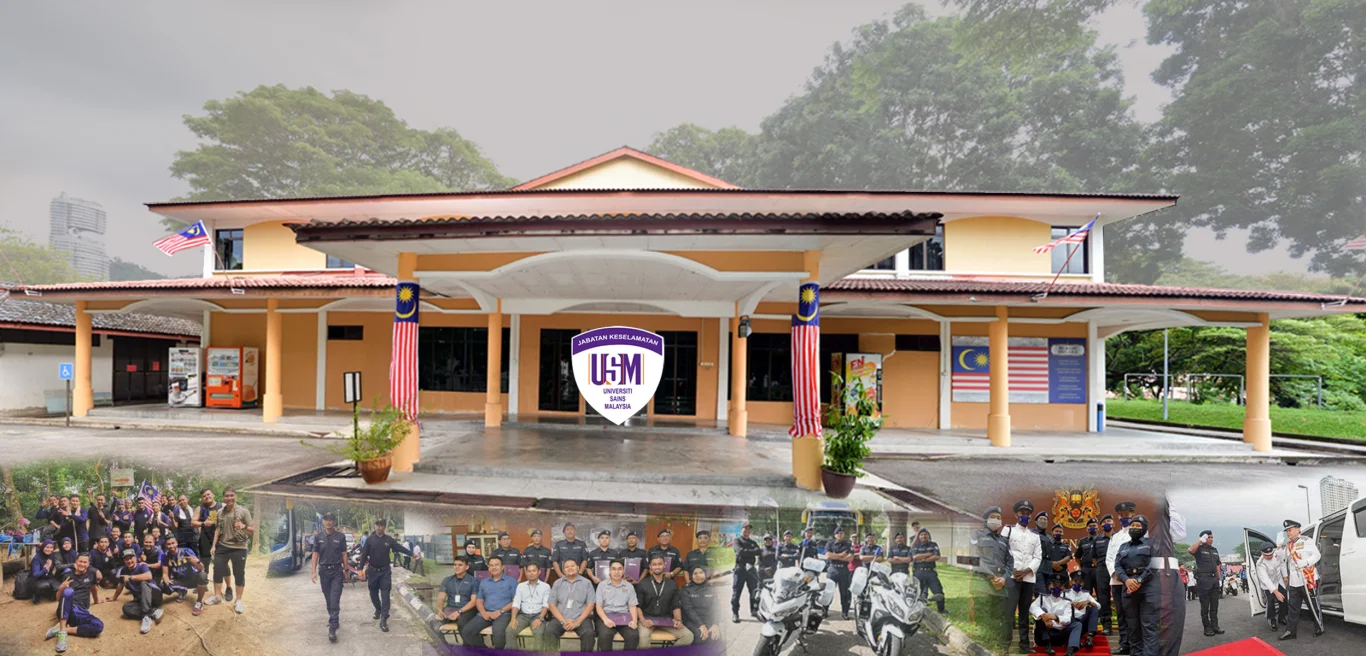 Bermula dengan kawalan keselamatan oleh Syarikat Safeguard Sdn. Bhd. iaitu semasa Universiti Sains Malaysia (USM) ditubuhkan pada tahun 1969. Pada 20 Mei 1974 kawalan keselamatan telah diambilalih oleh Pusat Keselamatan, USM yang kini dikenali sebagai Jabatan Keselamatan dengan keanggotaan asal terdiri daripada seorang Pegawai Keselamatan dan 33 orang Pengawal Keselamatan termasuk 4 orang penyelia. Pada masa yang sama sehingga tahun 1978, Jabatan Keselamatan masih lagi membuat kawalan di dua tempat iaitu di kampus induk dan Maktab Perguruan Persekutuan Bukit Gelugor (RECSAM) yang dipinjamkan oleh Kementerian Pelajaran.